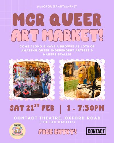 The Mcr Queer Market will take over our building on Sat 21 Feb with lots of amazing queer artist stalls.